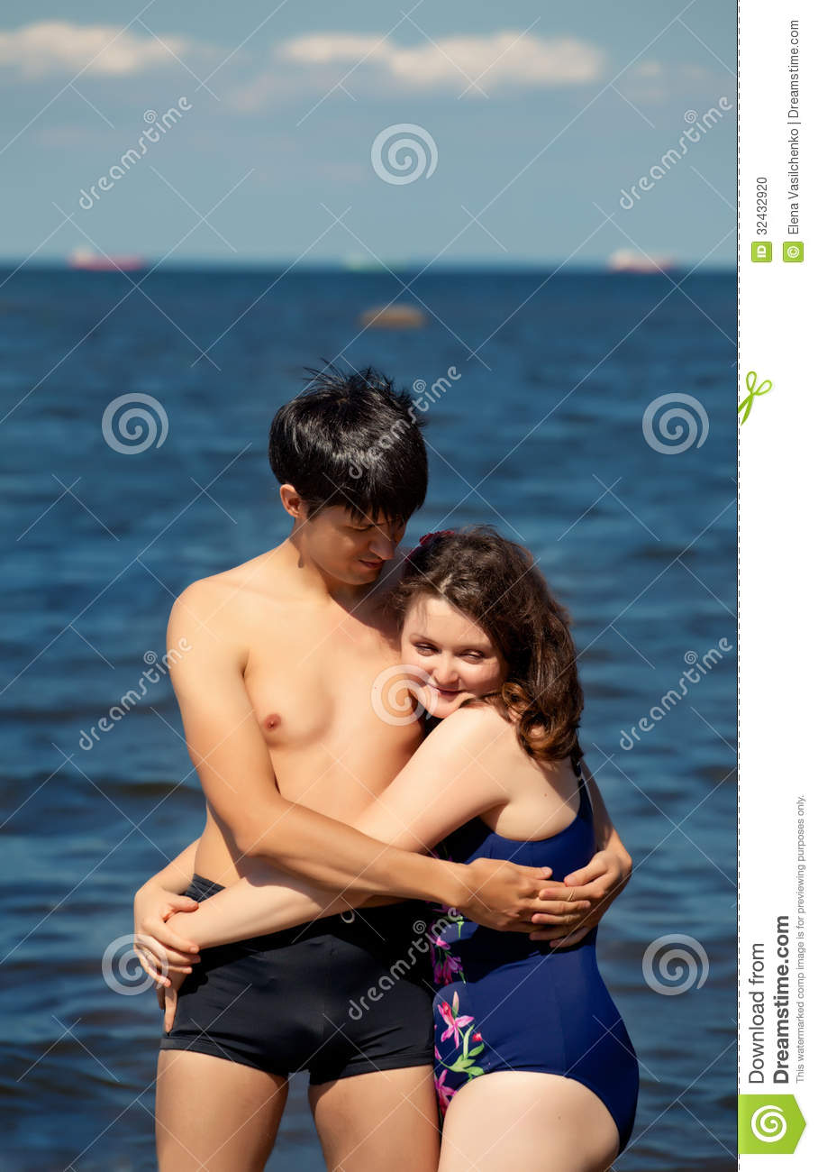 couple-lovers-family-relaxing-rock-sea-short-plus-size-women-slim-man-32432920
