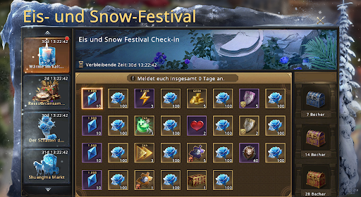 Hinweis: Solltet ihr einen Tag verpassen, könnt ihr die verpasste Belohnung für 500 Diamanten erhalten.