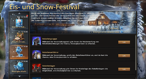 Während der Eventzeit habt ihr beim Besiegen von Rebellenhochburgen die Chance, Eisskulpturrosen zu erhalten.