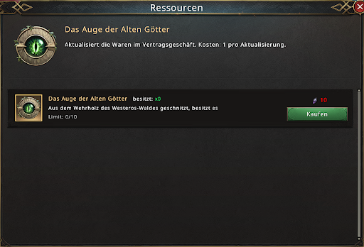 5. Durch das Anklicken der Schaltfläche „Shop aktualisieren“ im Shop werden alle Waren erneuert, die Bestände in beiden Shops gleichzeitig aufgefüllt und es besteht die Möglichkeit, dass hochwertige Gegenstände erscheinen. In bestimmten Zeitabständen steht eine kostenlose Aktualisierung zur Verfügung.