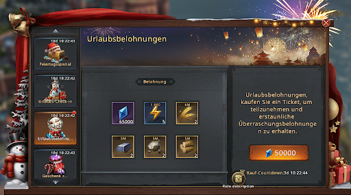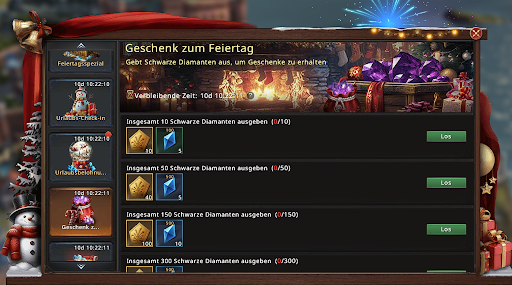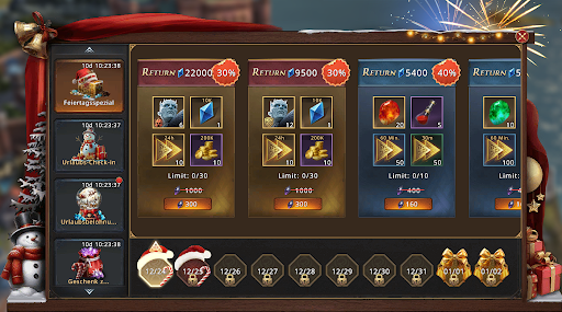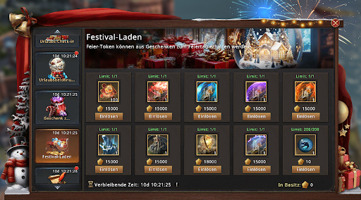 Meldet euch jeden Tag im Spiel an und erhaltet eine Belohnung! Loggt euch an allen Tagen in Folge ein, da verpasste Belohnungen nicht nachträglich erhalten werden können. Alle verfügbaren Belohnungen lassen sich mit einem Klick abholen.