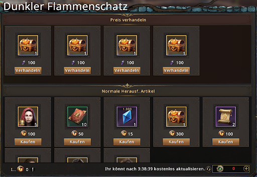 4. Durch Klicken auf die Schaltfläche „Shop aktualisieren“ werden alle Waren im Shop aktualisiert, die Bestände in beiden Shops gleichzeitig aufgefüllt und es besteht die Chance, hochwertige Artikel zu erhalten. Nach bestimmten Zeitintervallen steht ein kostenloses Update zur Verfügung.