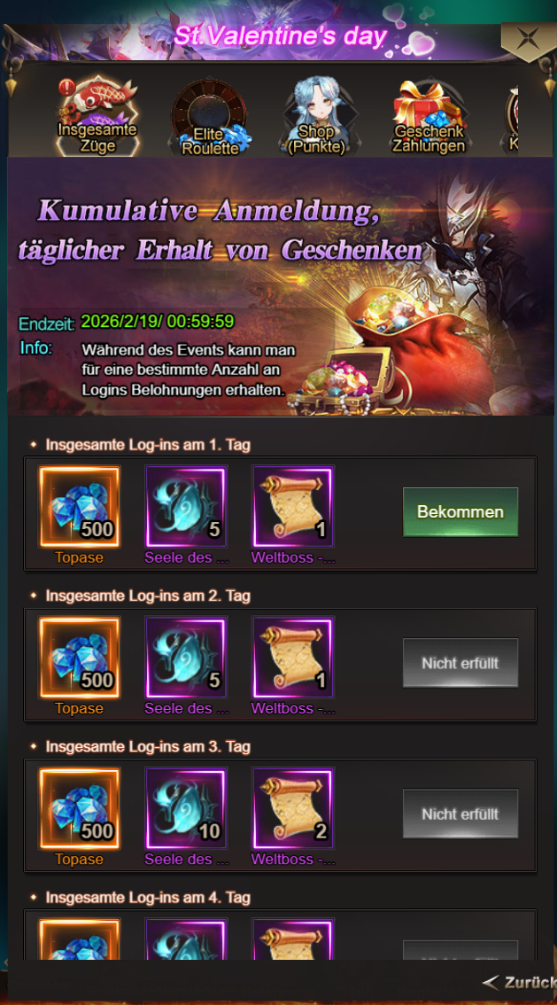 Meldet euch innerhalb des Ereignisses jeden Tag an und erhaltet Geschenke!