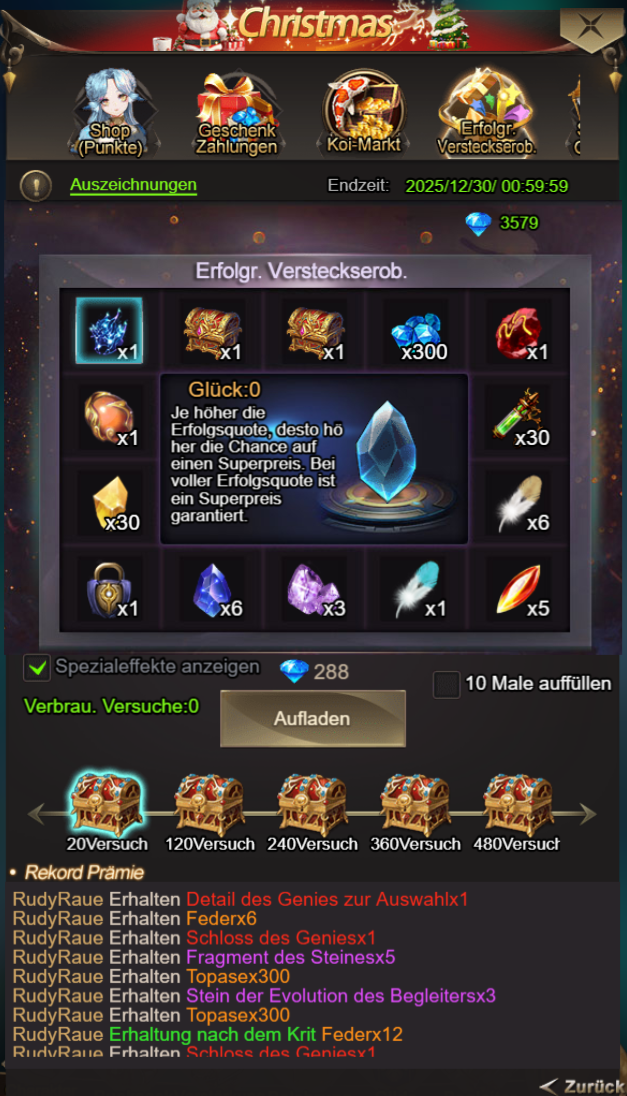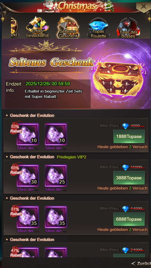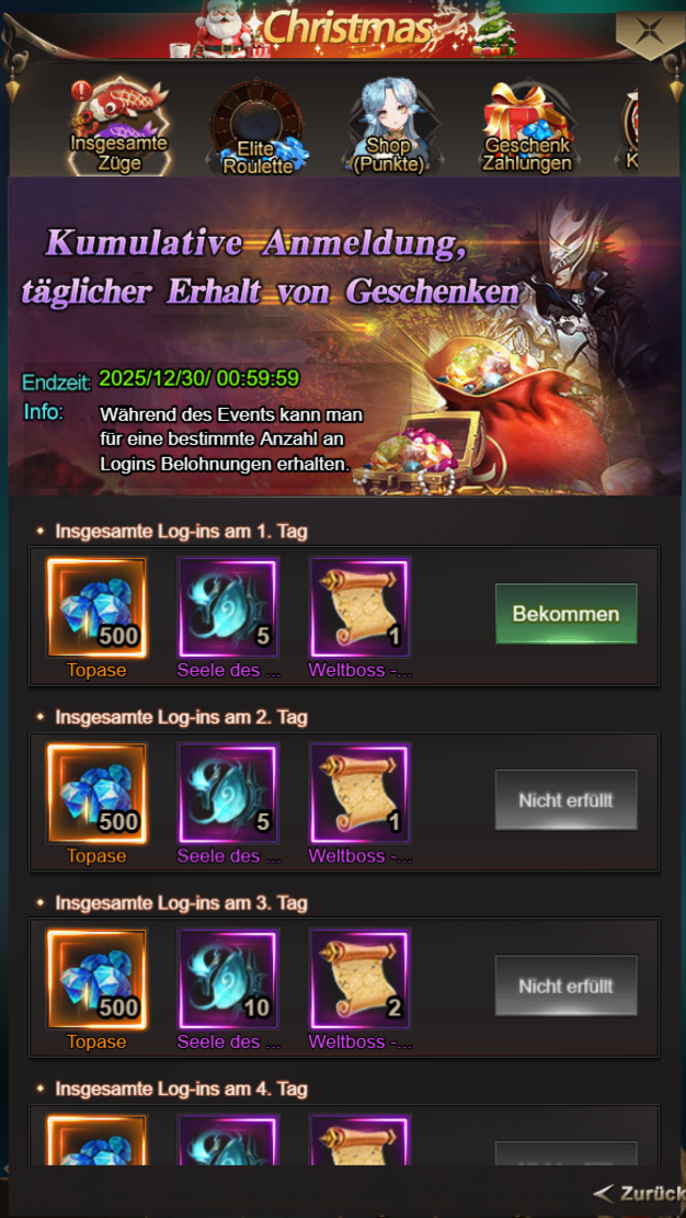Meldet euch innerhalb des Ereignisses jeden Tag an und erhaltet Geschenke!