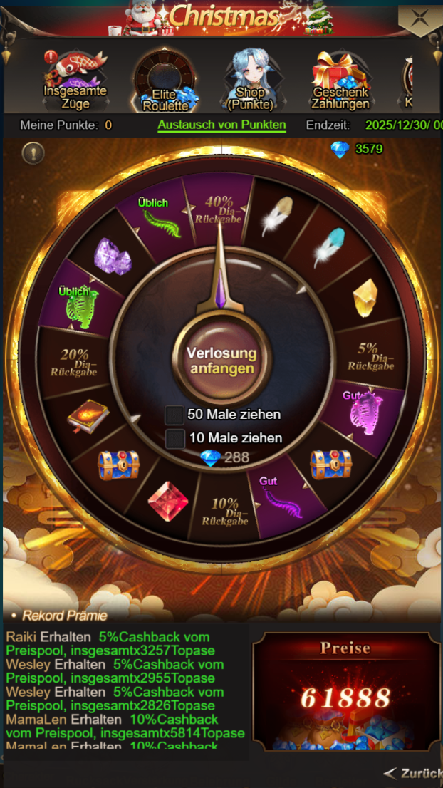 Erhaltet viele wertvolle Geschenke im Roulette!