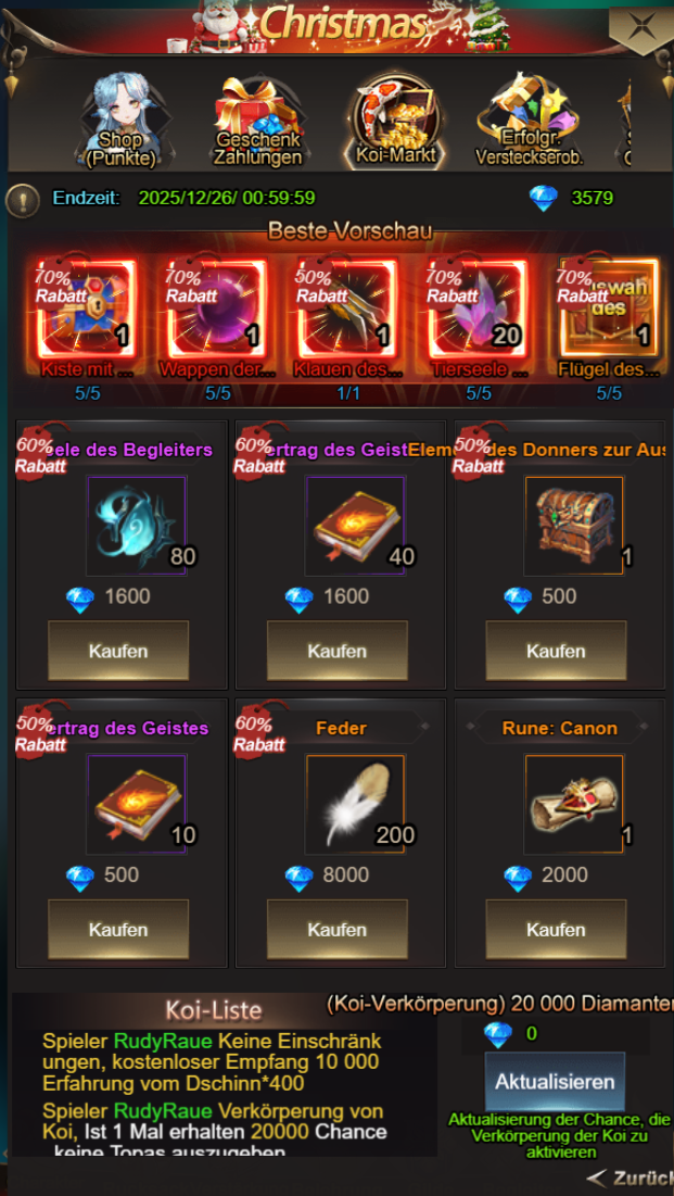 Tauscht im Koi-Markt eure Topase gegen wertvolle Gegenstände ein. Die Koi-Liste kann aktualisiert werden!