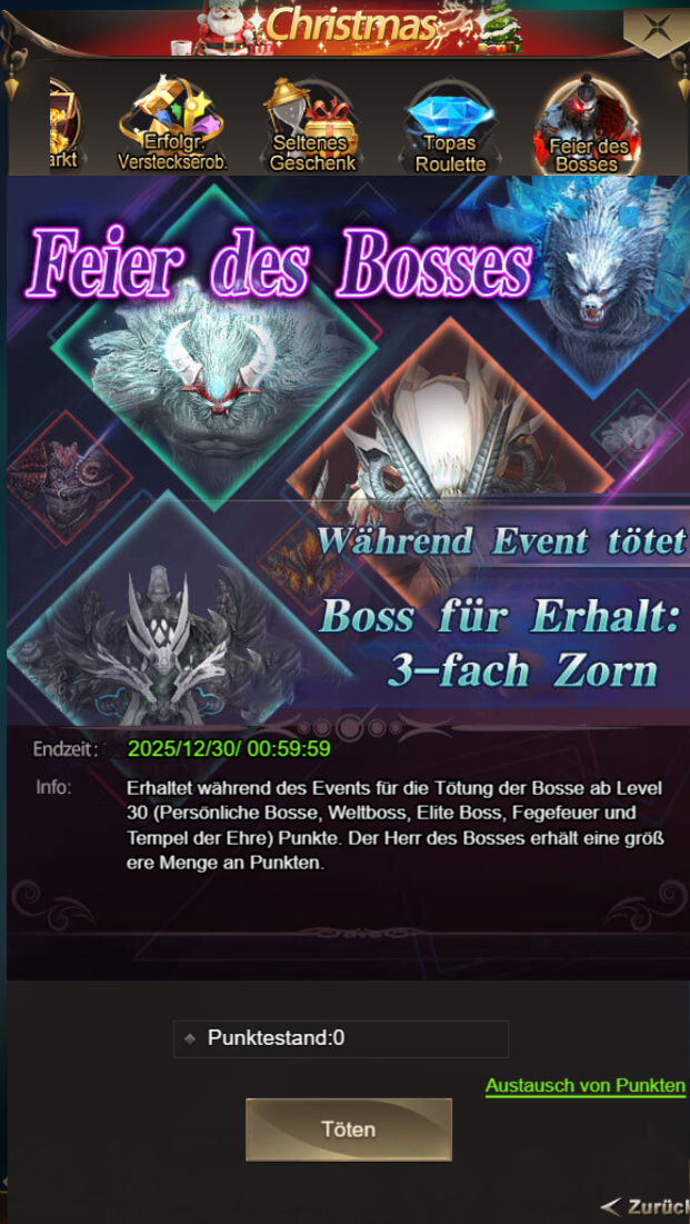 Kämpft mit den verschiedensten Bossen und erhaltet eure garantierte Anzahl an Punkten!