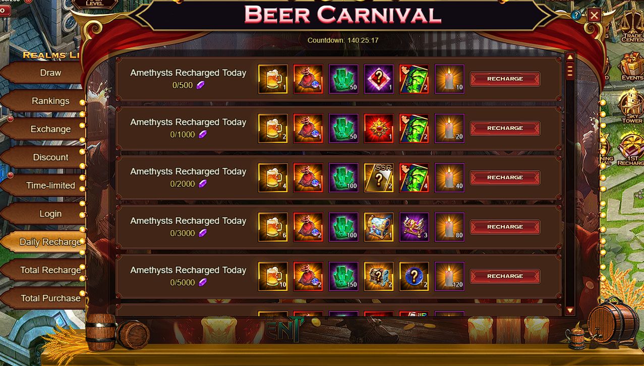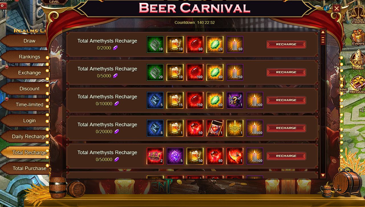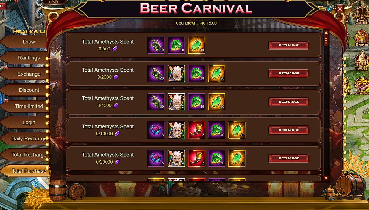 Total Recharge Purchase game currencies for certain amounts and get rare rewards. Total Amethysts Recharge 2 000: - Artifact Beryl – 20