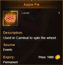 Apple Pie can be obtained in other event bookmarks or purchased for Amethysts.