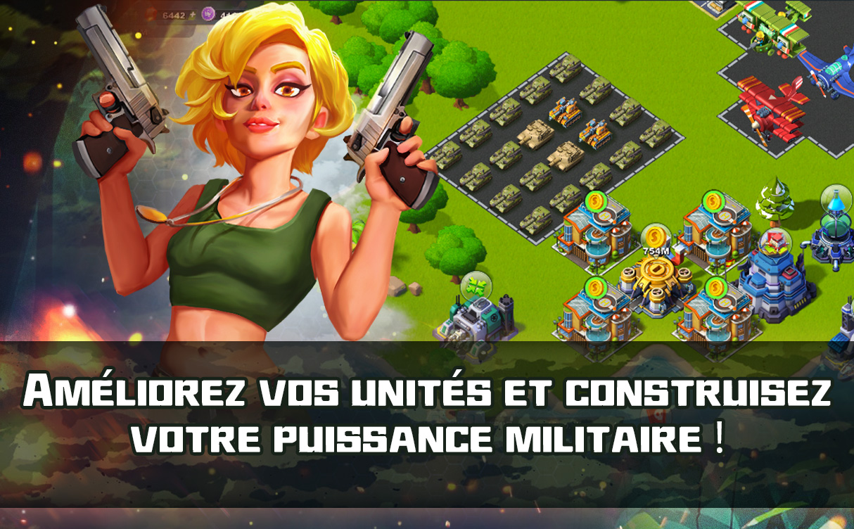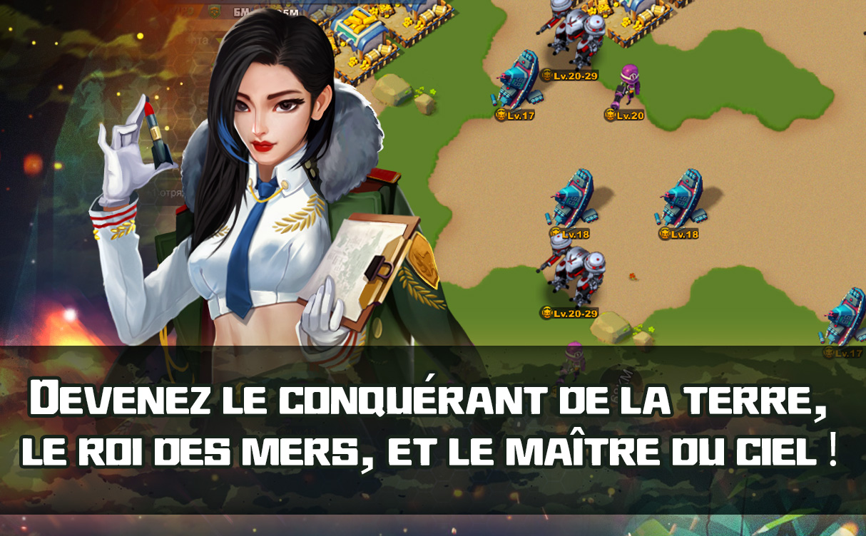 - ◇ Joignez des troupes pour les faire monter de niveau. Les forces terrestres, navales et aériennes attendent leur général !