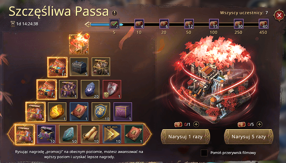 Wykonuj różne zadania, które zostaną otwarte w określonym czasie i otrzymuj przyjemne nagrody. Dodatkowe nagrody otrzymają ci gracze, którzy wykonają określoną liczbę zadań.