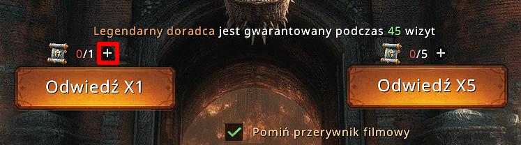 Na każde 50 wizyt masz gwarancję legendarnego doradcy. Po otrzymaniu licznik jest resetowany.
