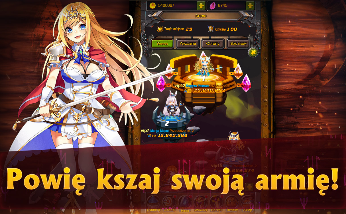 Planuj i podbijaj. Prawdziwy przywódca zdobędzie nowych bohaterów, lepszy sprzęt, zwierzaki, własny transport i nie tylko. Odnieś wiele zwycięstw i zapisz się na kartach historii IDLE Glory!