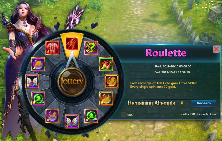 When you recharge game gold (for every 100 gold), you will get an additional free attempt to rotate the roulette wheel.